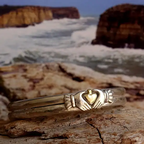 die Claddagh Armspange ist ein handgeschmiedeter Armreifen in Gr. XS.